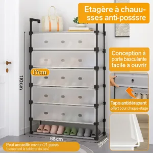 Gardez vos chaussures organisées, propres et accessibles grâce à cette étagère de rangement 7 couches avec protection anti-poussière.