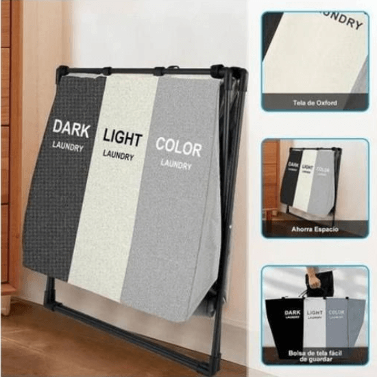 Adoptez ce panier à linge 3 compartiments pliable pour une organisation optimale et un intérieur toujours bien rangé.