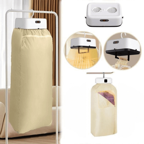 Le sèche-linge électrique portable avec sac de séchage est une solution pratique pour sécher vos vêtements rapidement, même dans les espaces restreints. Idéal pour les appartements, les dortoirs, les voyages ou les situations où l’espace est limité, cet appareil combine efficacité et compacité.